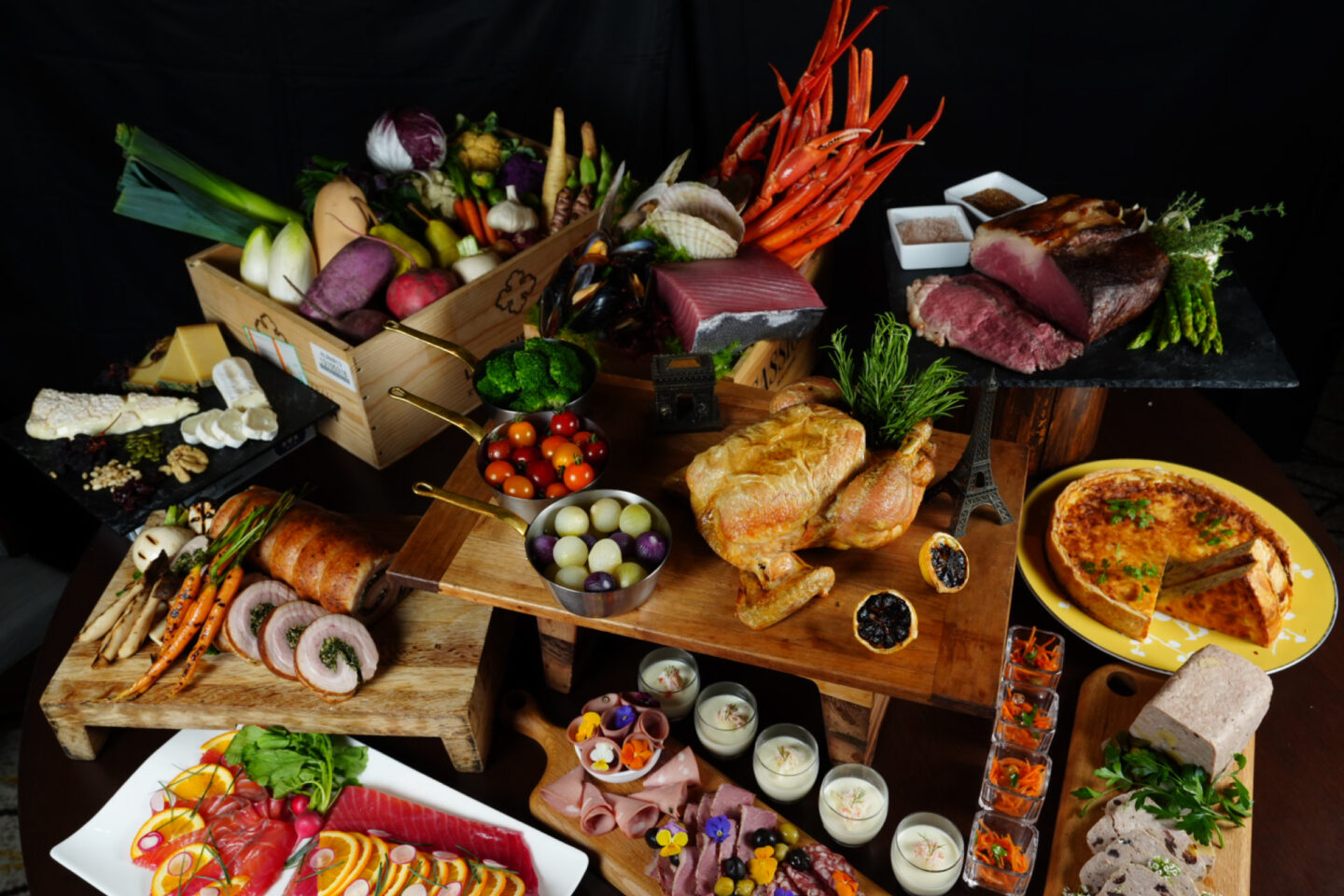 12月24日・25日の2日間限定でお届けする特別なフルブッフェ。黒毛和牛の赤ワイン煮込みや国産豚のポルケッタをはじめ、多彩なメインディッシュがテーブルを彩ります。さらに、ズワイガニや海老、帆立を贅沢に揃えたシーフードステーション、芳醇なローストビーフやローストターキーが並ぶカービングステーションもご用意。さらに、旬の苺や華やかなクリスマスデザートが、至福のひとときをより一層輝かせます。一年で最も心ときめく季節、大切な人との特別な夜を心ゆくまでご堪能ください。